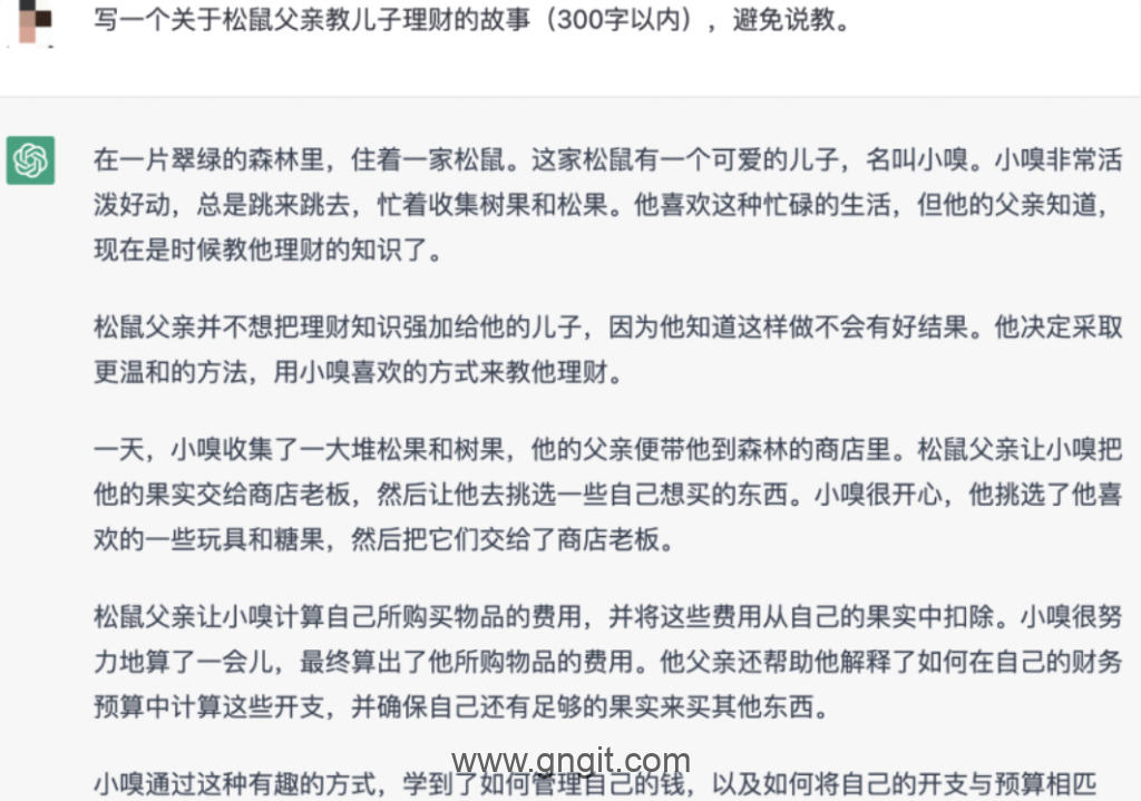 “这开启了一个新行当。”希克勒说,他在ChatGPT上输入一行提示,比如“写一个关于父亲教儿子理财的故事”,就能获得素材。