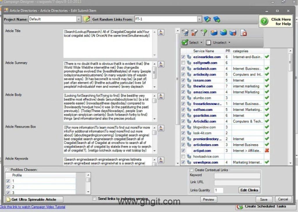 GSA还有一个服务就是 serengines.com,可以自动为你建立高权重web2.0网站账号和发布内容。和Rankerx有点像,也是不错的替换软件。